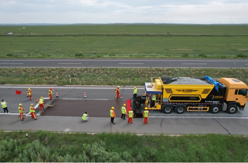 2、以碎石封層為下承層,稀漿封層/微表處作為表層形成整體結構層次,這種結構結合了碎石封層和稀漿封層微表處兩者的優點,具有優良的平整度和抗滑性能;