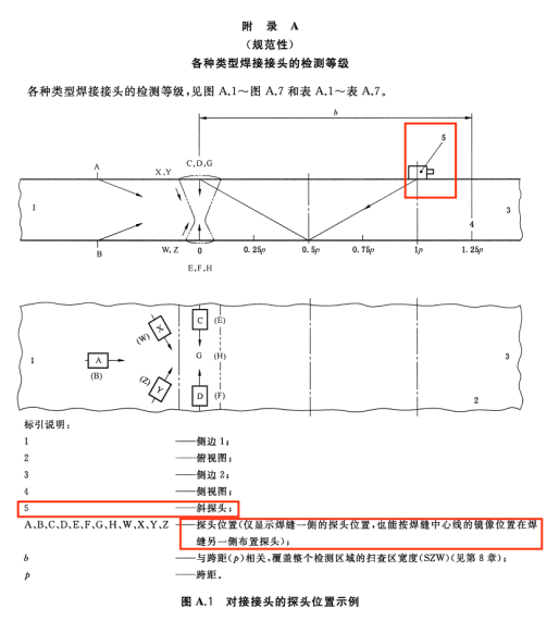 | 15 | ![]() | ![]() | 增加了插人式管座角接頭直探頭位置的圖示(見圖A.3,2013年版的圖A.3) |